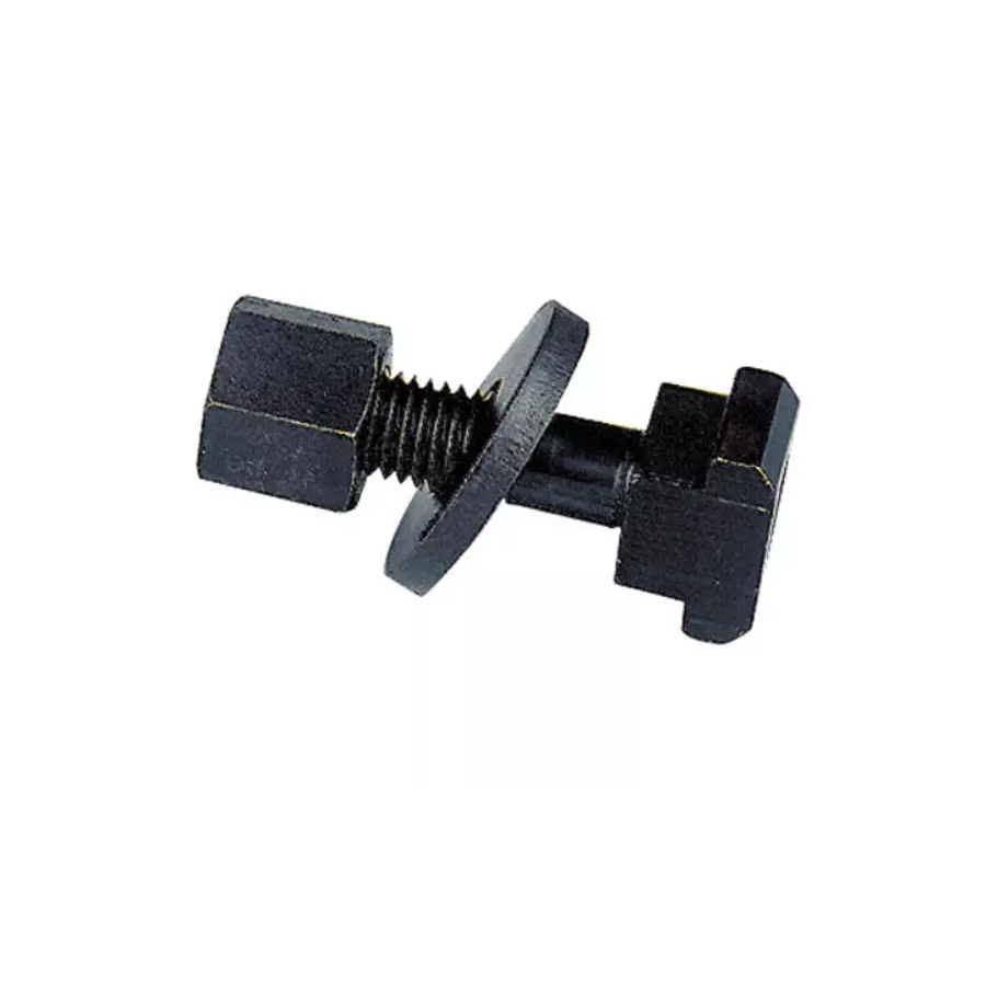 Jeu de 2 coulisseaux de guidage Tool France PROMAC 9249, conception haute résistance en acier traité avec finition rectifiée. Système de maintien en T type NW12 (T12mm) avec tiges filetées M10x50mm, incluant écrous et rondelles. Pièces d'usure de précision pour scies à ruban métal (2115, 2116, 2117), permettant un ajustement micrométrique, une stabilité de coupe optimale et une réduction drastique des vibrations pour une longévité accrue de la lame.