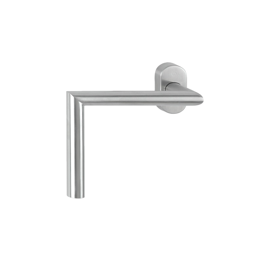 Poignée de fenêtre coudée PMR, en inox, manoeuvrable en position « assis » et « debout » disponible en 3 longueurs pour vantail gauche ou droit : 150, 200 et 300 mm pour satisfaire aux hauteurs de manoeuvre entre 0,90 et 1,30 m du sol.