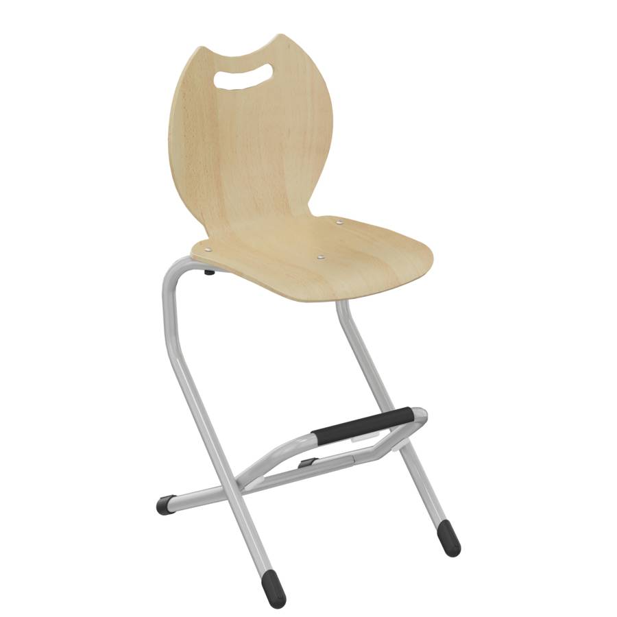 Hauteur d'assise de 52 cm conçue pour accueillir des enfants de plus de 4 ans à une table de taille adulte, favorisant une meilleure posture pour le personnel de service.|Chaise à double appui sur table, butées pour protection sous l'assise.|Coque en multiplis hêtre ép.10 mm finition Blueprotech, fixée par vis.|Piètement en tube acier D25 mm ép.2 mm peint poudre époxy, repose-pieds avec protection.|Contact au sol sur embouts non tachants et non marquants polyéthylène coloris noir.