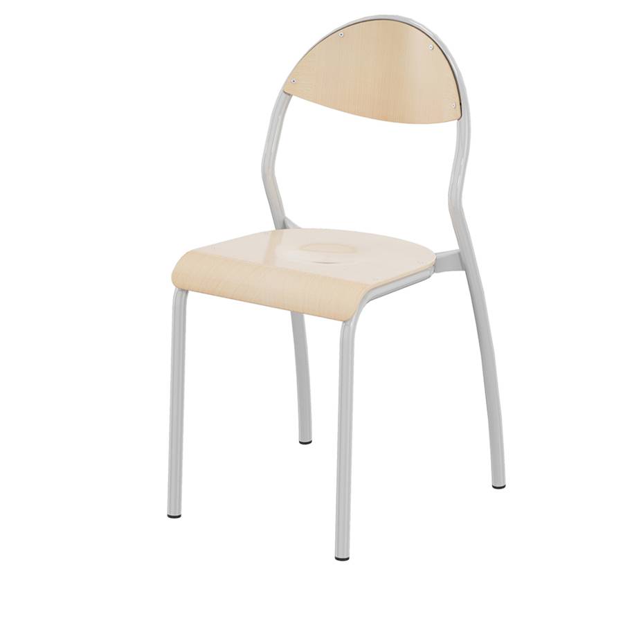 Avec ses 4 pieds, la chaise est stable. Elle est aussi confortable grâce à son assise appliquée avec cuvette. De plus, elle est empilable et équipée de butées d'empilage afin de protéger les chaises lorsqu'elles sont empilées. Ses pieds sont équipés d'embouts qui ne marquent pas le sol. Son dossier encastré garanti la solidité de la chaise. La finition Blueprotech® permet une meilleure résistance face aux chocs et rayures. En taille 6, elle permet d'asseoir des enfants dès 12 ans et adultes.