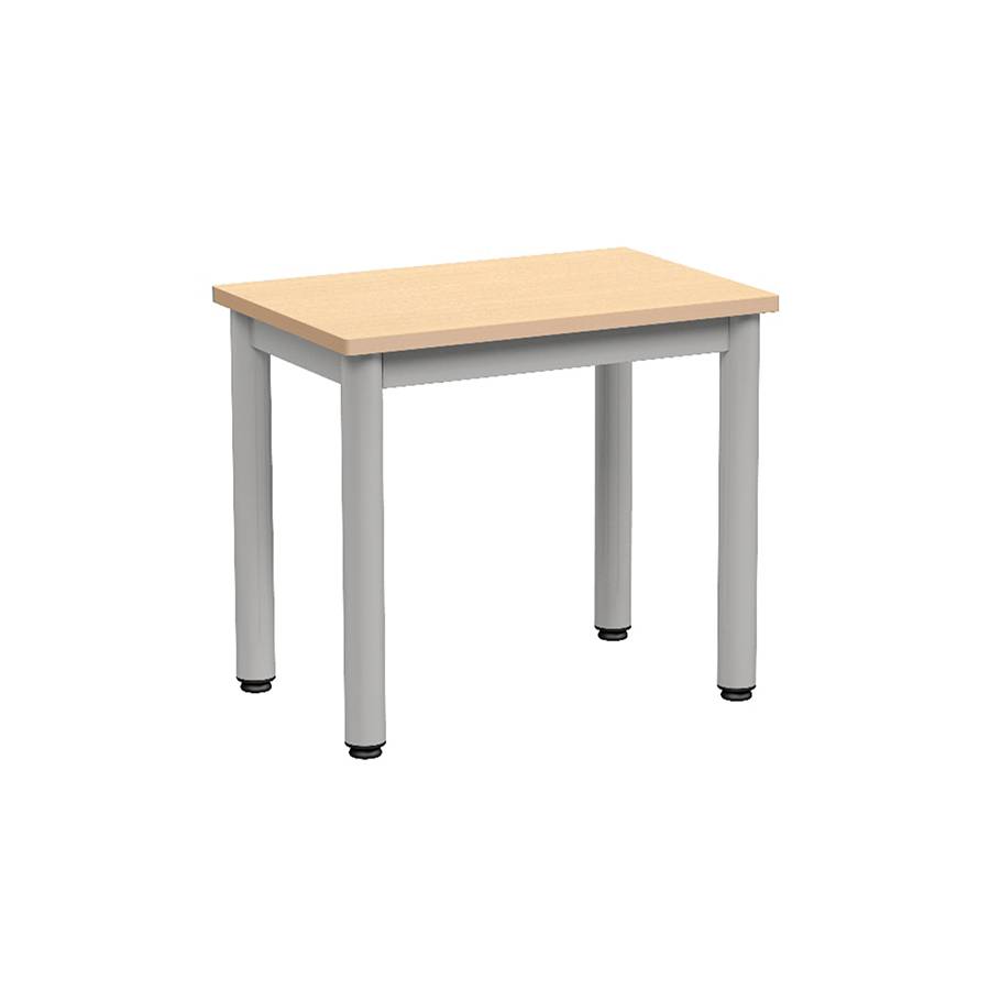 Table CARÉLIE plateau ép.21 mm stratifié chant bois piètement époxy - 60x40 cm - T2 - Hêtre miel/Gris alu 9006 - MOBIDECOR