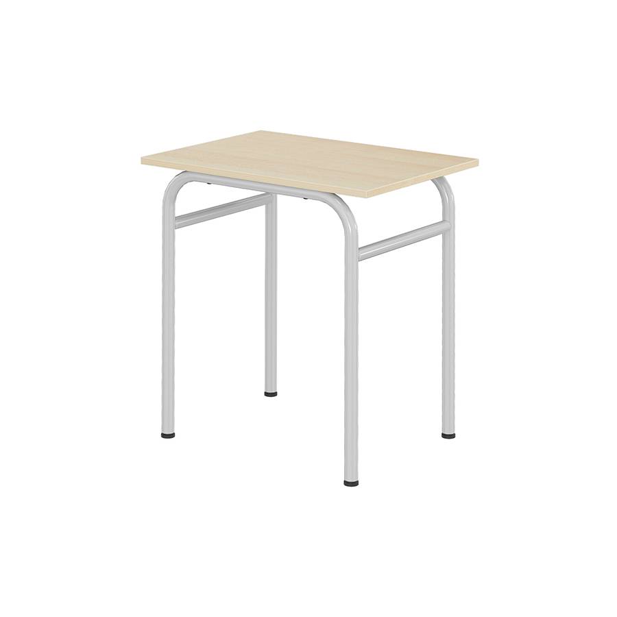 Cette table est à quatre pieds. Les pieds en tube acier, revêtu époxy sont fixés par vis au plateau, et sont soudés entre eux par soudure éléctrique pour une solidité optimale. Plateau mélaminé, chant ABS. Les pieds sont équipés d'embouts à talons, non-marquants et non-tachants. Il est possible d'ajouter en options un crochet porte cartable par personne.