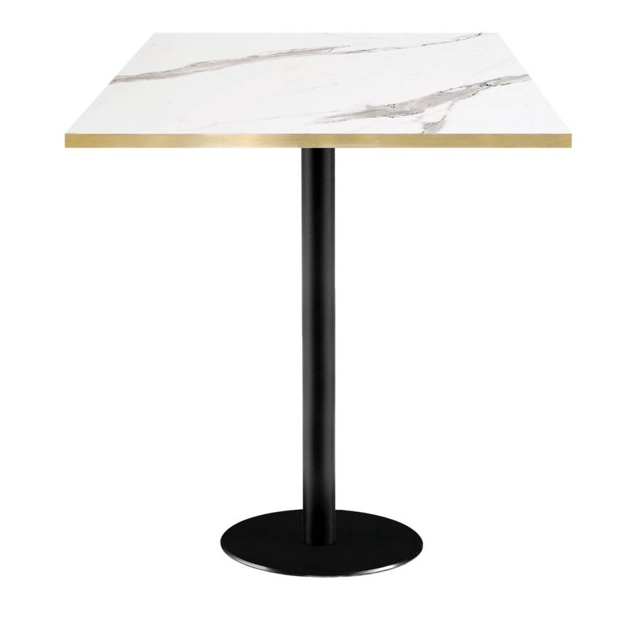 Mange-debout pied noir 70x70cm marbre blanc chant laiton | mobilier collectivités