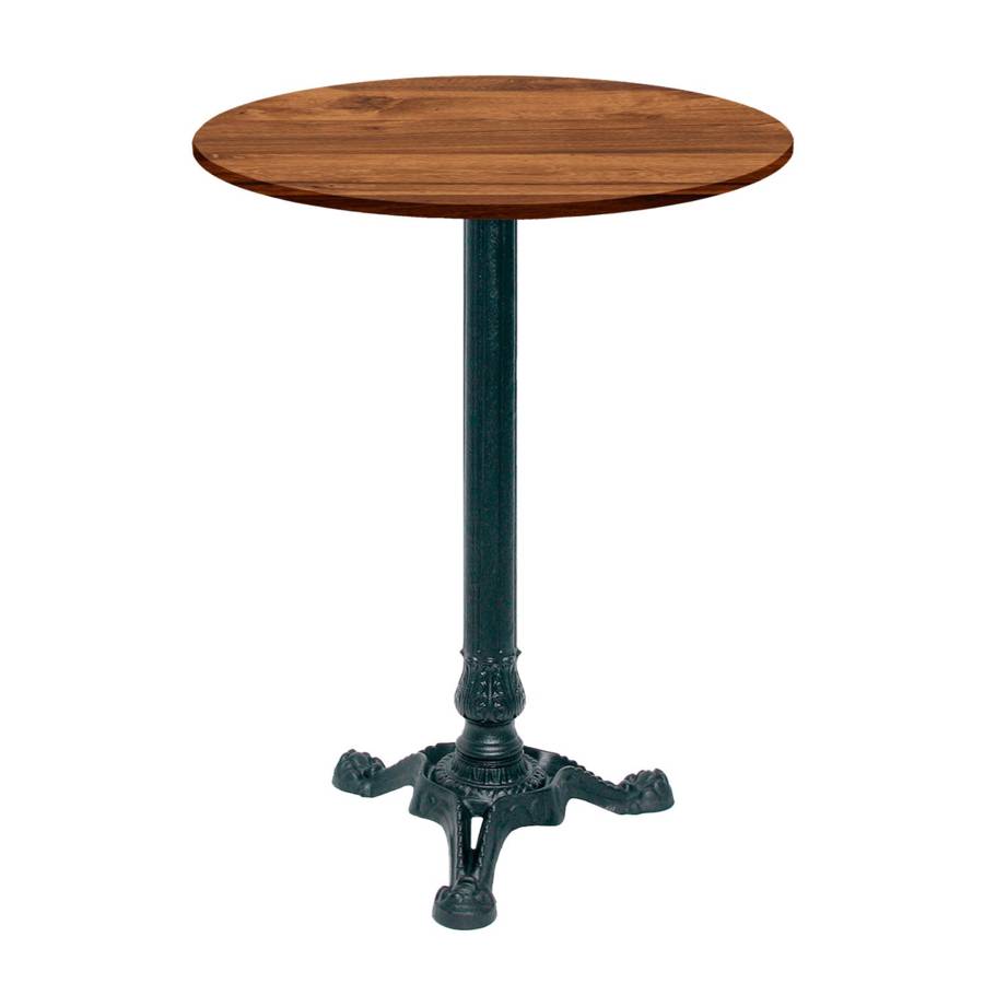 - Matériau : plateau en bois aggloméré avec placage stratifié très résistant - piétement en fonte de fer sablée et ébarbée, peinture époxy en poudre, traitée à haute température