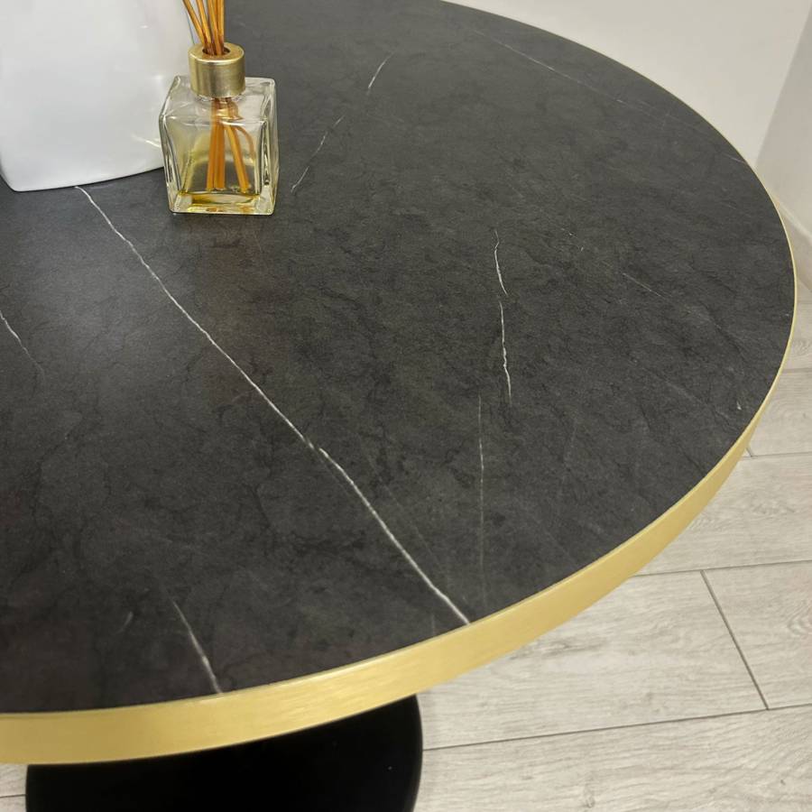Mange-debout pied noir Ø60cm marquina chants laiton - intérieur - RestooTab