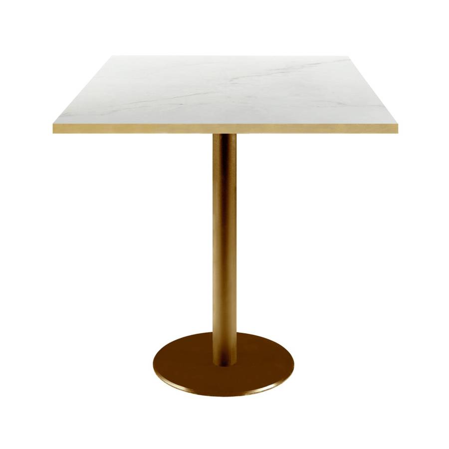 Table pied Doré 70x70cm marbre paros chants laiton | mobilier collectivités