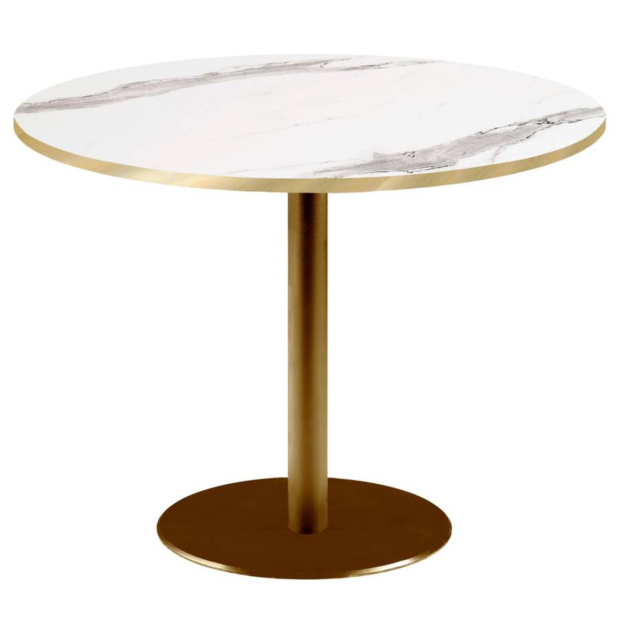 Table pied Doré Ø120cm marbre blanc chants laiton | mobilier collectivités