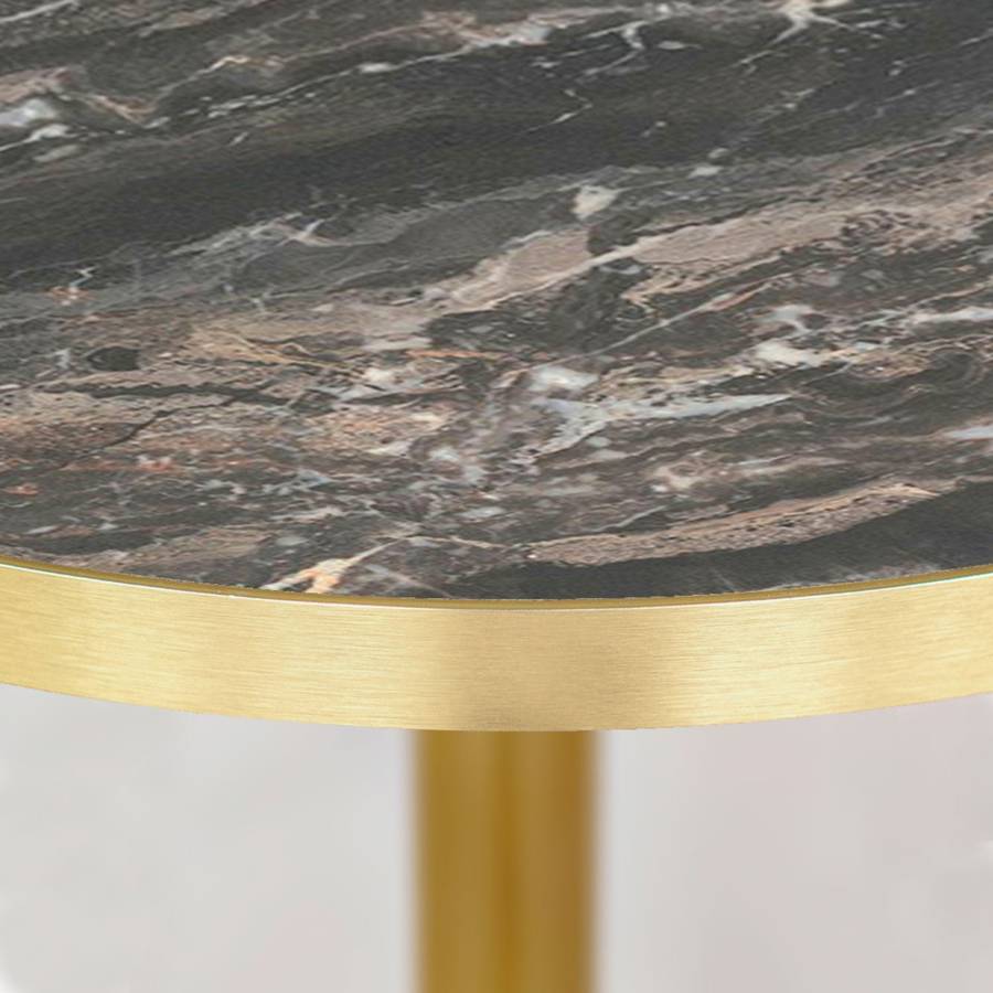 Table pied Doré Ø70cm marbre royal chants laiton - intérieur - RestooTab