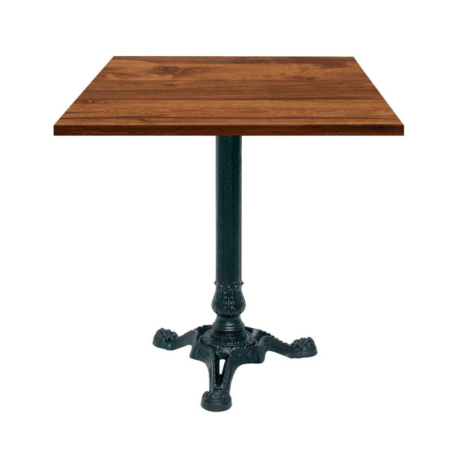 - Matériau : plateau en bois aggloméré avec placage stratifié très résistant - piétement en fonte de fer sablée et ébarbée, peinture époxy en poudre, traitée à haute température