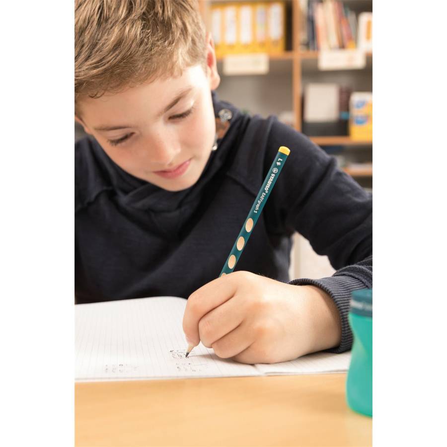 STABILO EASYgraph est le crayon graphite ergonomique idéal pour apprendre à écrire Spécialement conçu pour les mains des enfants, son corps a été pensé pour simplifier l'apprentissage de la position tripode et permettre d'avoir une position détendue et confortable Son corps large est facile à tenir, la forme triangulaire incite à la prise en main à trois doigts et enfin les empreintes antidérapantes aident à placer son pouce, son index et son majeur dans la position idéale ...