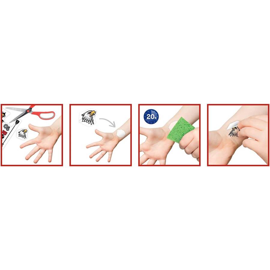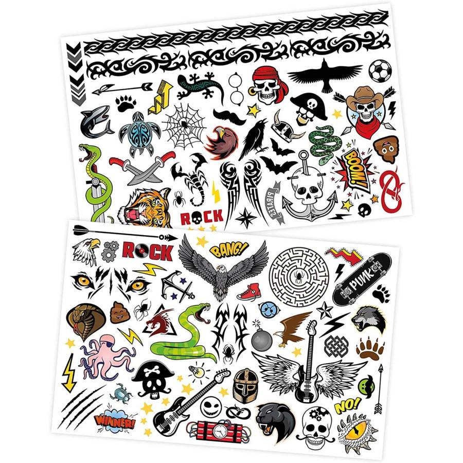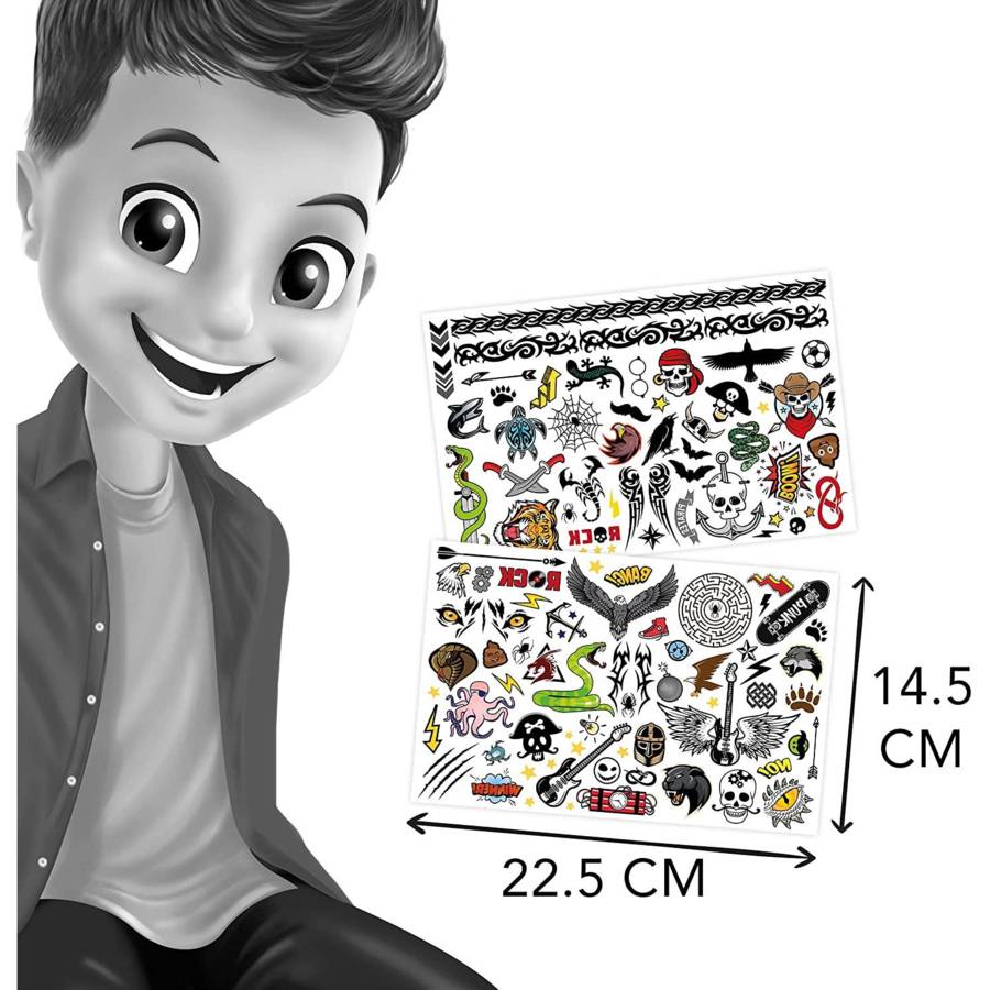 Votre enfant pourra imiter les grands en se faisant lui aussi des tatouages. Choisissez un motif parmi les 75 tatouages Rock proposés et appliquez-le sur votre peau. Tatouages éphémères et lavables. Attention, précautions concernant l'usage de cet article : * Article conseillé à partir de 6 ans. * En cas d'utilisation par des enfants en bas âge : - usage familial conseillé en présence des parents - retirer et jeter l'emballage avant toute utilisation - il est possible que cet article contienne des petites pièces amovibles succeptibles d'être ingérées et de provoquer un étouffement