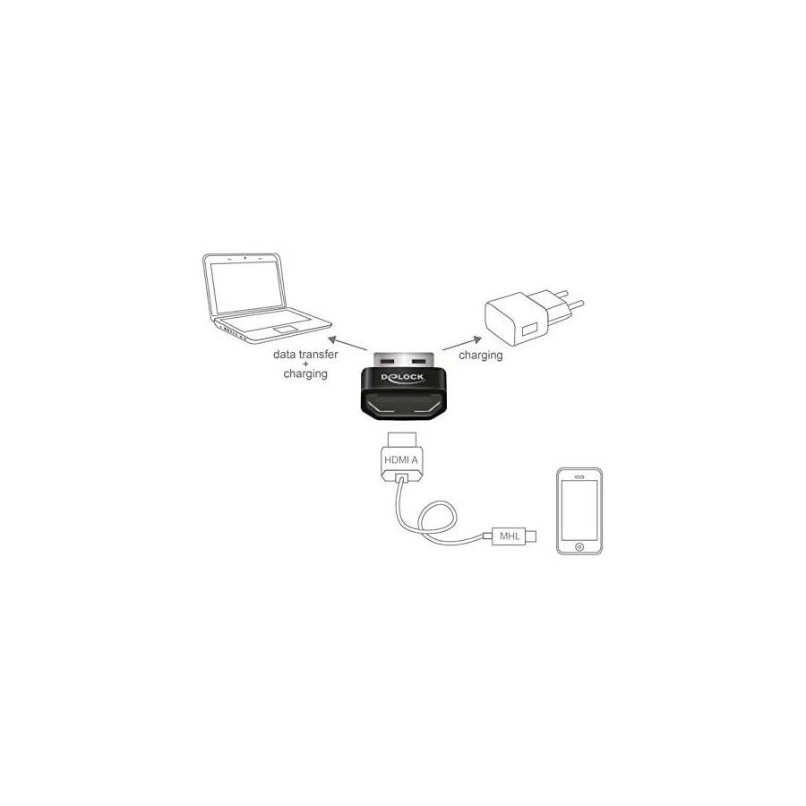 Adaptateur Prise femelle HDMI A vers fiche mâle USB A noir