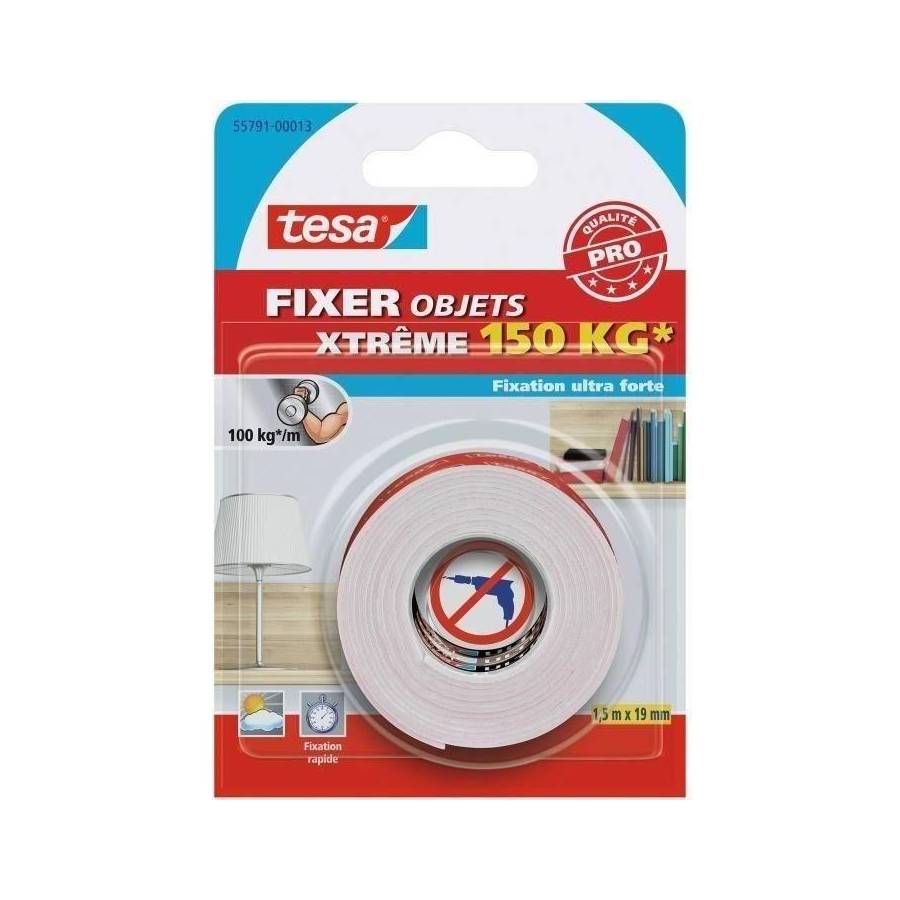 Adhésif Fixer Objets Double face xTREME 150Kg 1,5m x 19mm