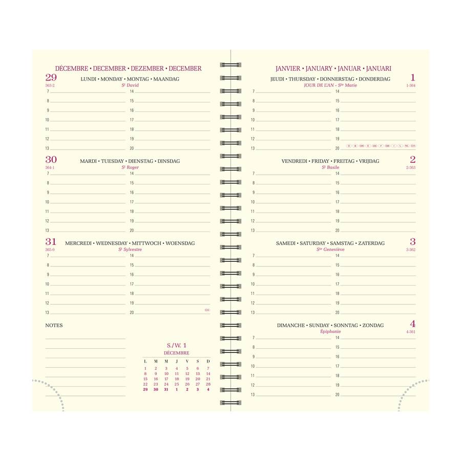 Un grain Croco pour une gamme toute en couleur ! Semaine horizontale sur 2 pages. Rendez-vous par heure de 7h à 20h sur 7 jours. Multilingue. Coins marque-pages détachables. Couleur(s) : Couleurs assorties Couleur Papier : ivoire Nombre de couleurs assorties : 4 Gamme : Baby croco Grille : Eurotime Mise en page : Semainier Reliure : Spiralé plastique Tranche : naturelle Porte-Crayon : Non Langue : Multilingue Matière : Synthétique Format extérieur : 9x16