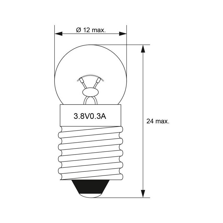 Ampoule Sphérique pour Lampe de Poche, 1,14 W culot E10, 3,8 V (DC), 300 mA