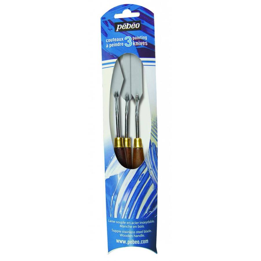 Set 3 couteaux à peindre : forme losange réf. 100-128, forme arrondie réf. 100-113, forme rectangulaire réf. 100-103. Recommandé pour le travail de la matière