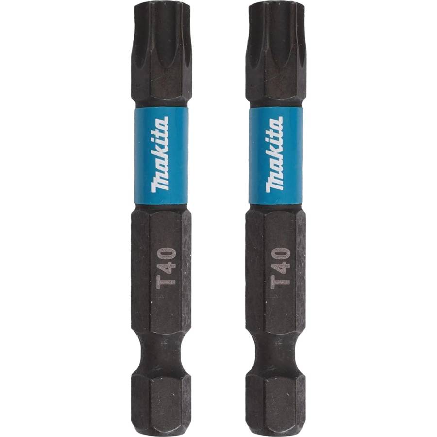 Makita B-63812 Embouts à Visser T40x50mm Lot de 2 Magnétique. Longueur : 50 mm. Tête de vis T40 Tige hexagonale 1/4" Quantité : 2.