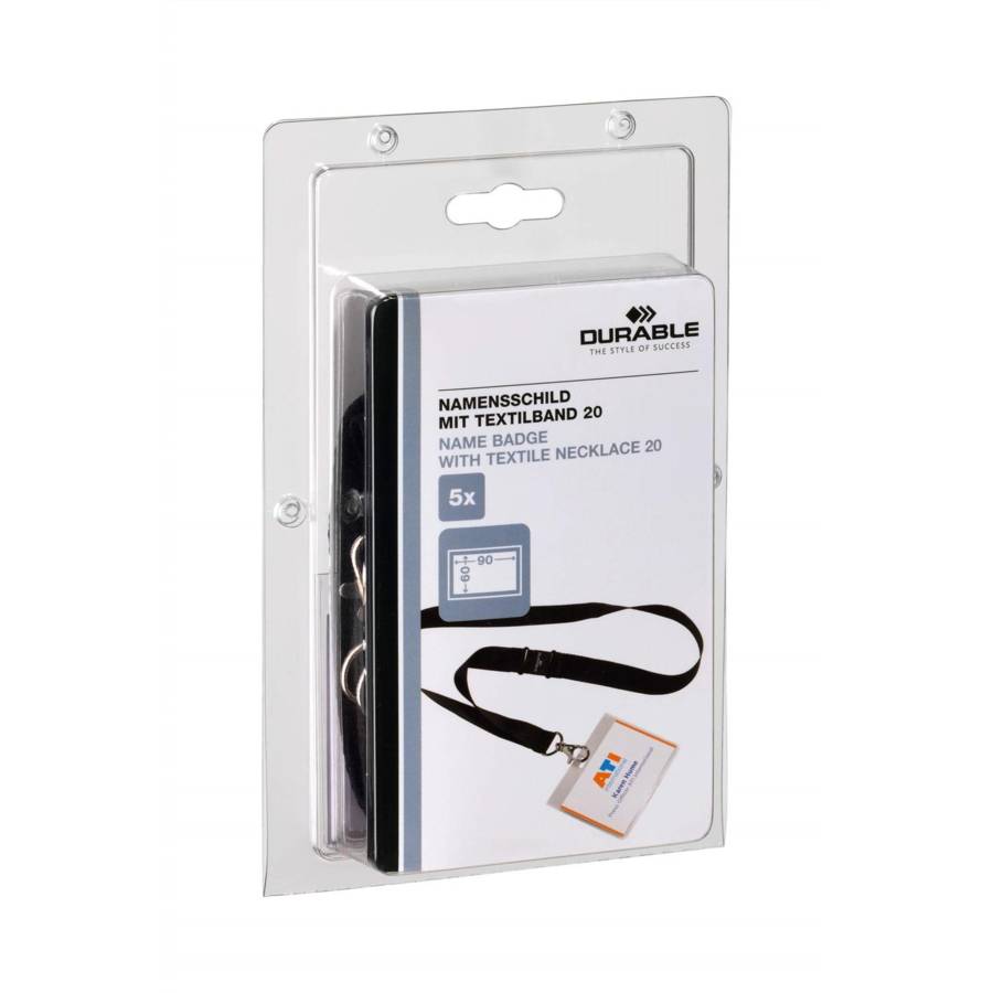 DURABLE Badge, avec lacet textile 20, 90x60 mm, noir, en