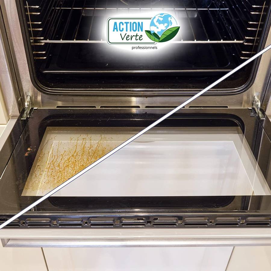 Voir plusULTRA DEGRAISSANT EN GEL : Elimine les graisses cuites et les dépôts carbonisés sur les fours, grilles, rôtissoires, sauteuses, friteuses, plaques de cuisson, barbecues, pianos, hottes, inserts… Ne laisse pas de trace blanche et sans odeur Sa formulation en gel permet d'adhèrer aux parois horizontales et verticales, et de cibler la surface à traiter afin d'éviter le gaspillage de produit. ECOCERTIFIE ET CONTACT ALIMENTAIRE ECOCERT : Garantie une formule 100% naturelle sans allergène, sans perturbateur endoctrinien, sans parabène, sans silicone, sans colorant. Audit réalisé tous les ans sur les produits pour garantir une qualité continue CONTACT ALIMENTAIRE - HACCP MODE D'EMPLOI: Vaporiser la surface à décaper. Pulvériser sur four froid ou tiède. Augmentez la température jusque 60°, laissez agir 10 à 15 minutes (selon le degré de salissures). Laissez refroidir le four. Utilisez si nécessaire une brosse, tampon ou éponge abrasive pour éliminer les dépôts résistants. Rincer à l'eau tiède. ACTION VERTE, une gamme large de produits 100% labellisés. Gamme de produits généralistes et spécialisés, elle offre une double garantie : des produits sans dangers pour l'Homme et l'Environnement et une efficacité professionnelle DES PRODUITS MADE IN FRANCE : tous les produits ACTION VERTE sont conçus et fabriqués en France