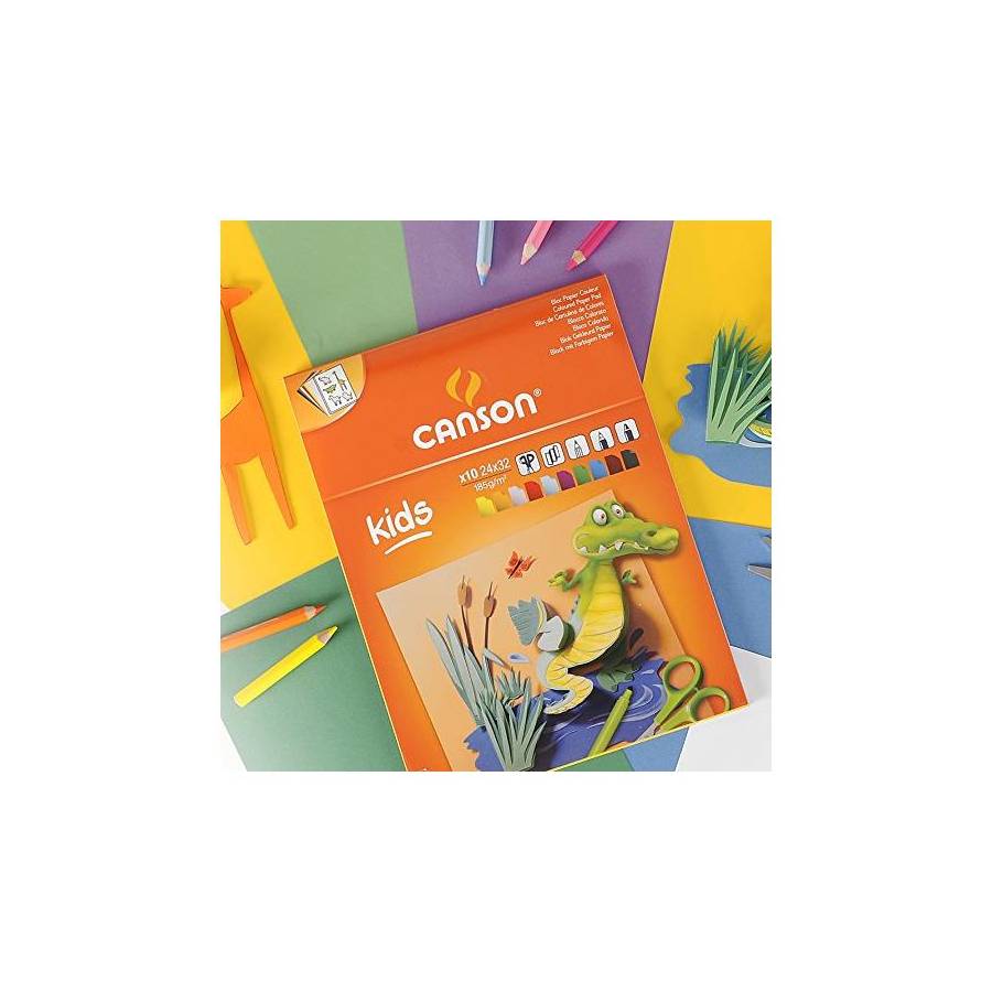 Bloc 10 Feuilles Papier Couleur KIDS 240 x 320 mm 185 g couleurs assorties