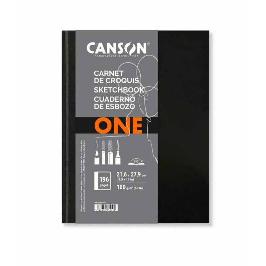 Canson - Bloc de croquis ARTBOOK ONE Format A4 Noir 196 pages, papier d'esquisses Canson, 100 g/m² Couverture rigide