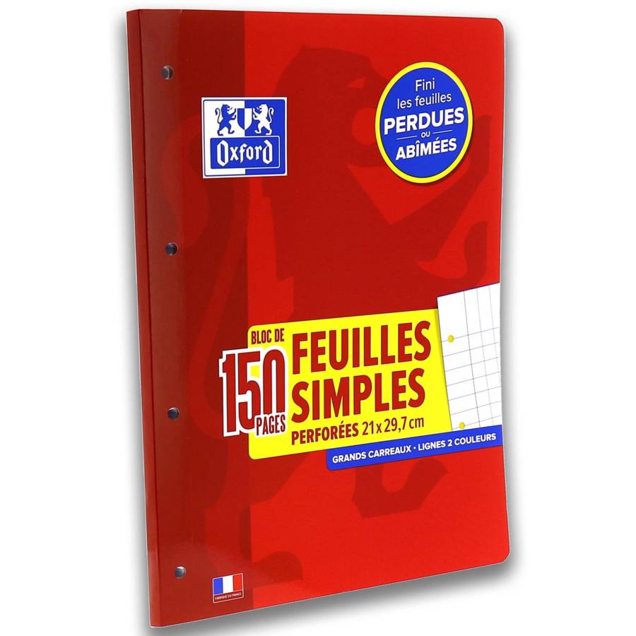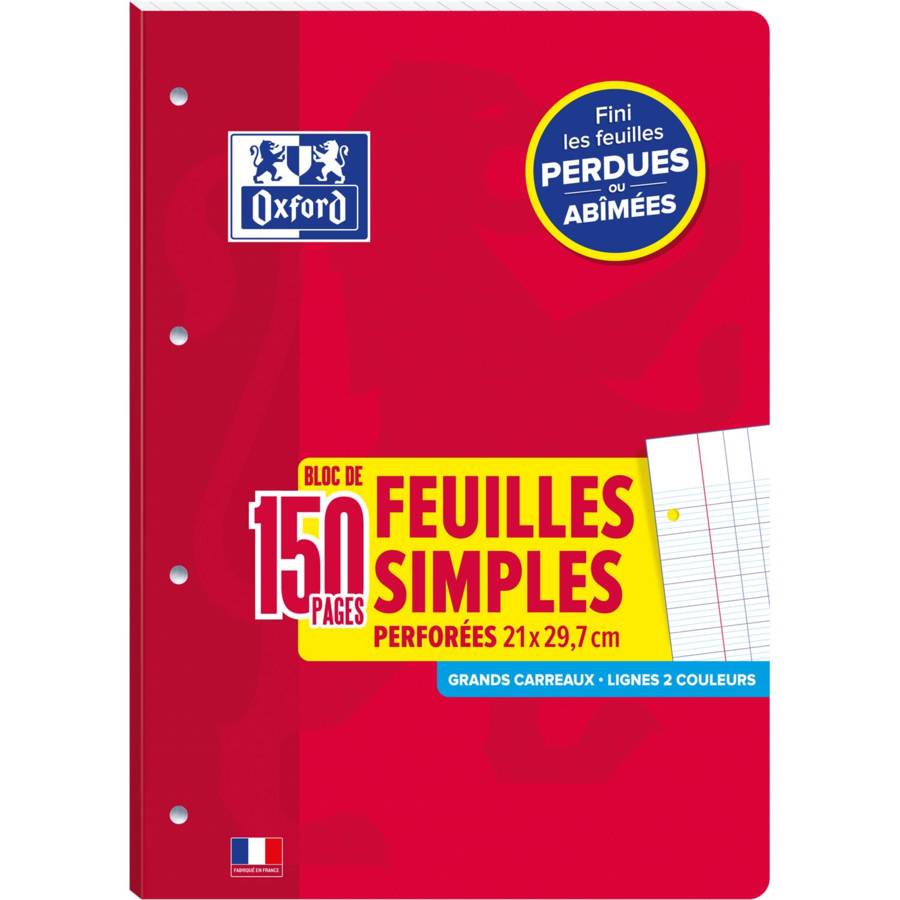 Bloc de Feuilles Simples détachable perforés A4 Grand carreaux 90g 150 pages