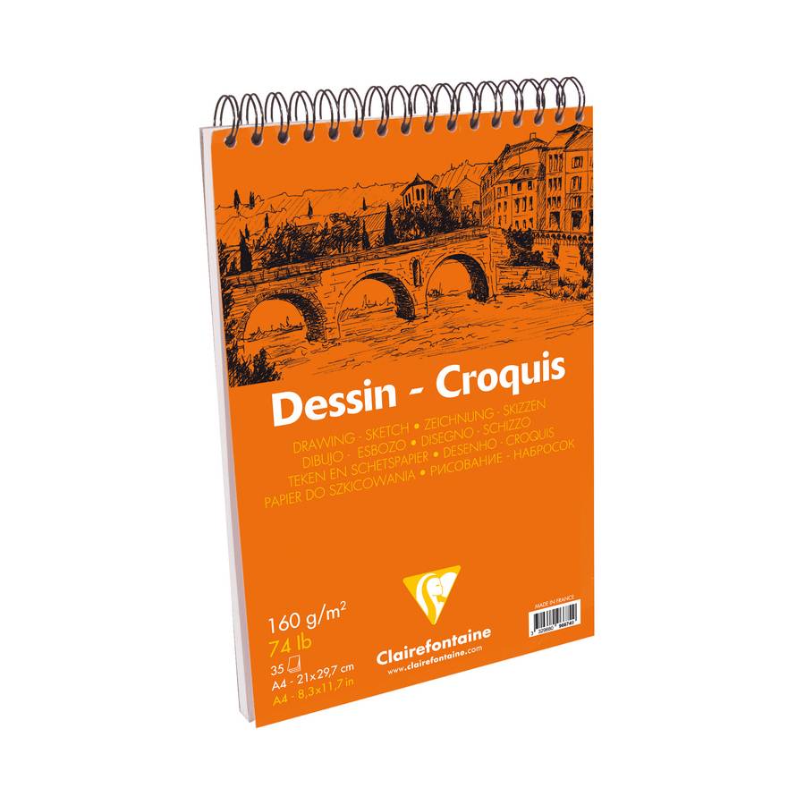 Bloc Dessin Spiralé Croquis 160g A4 35 Feuilles blanc