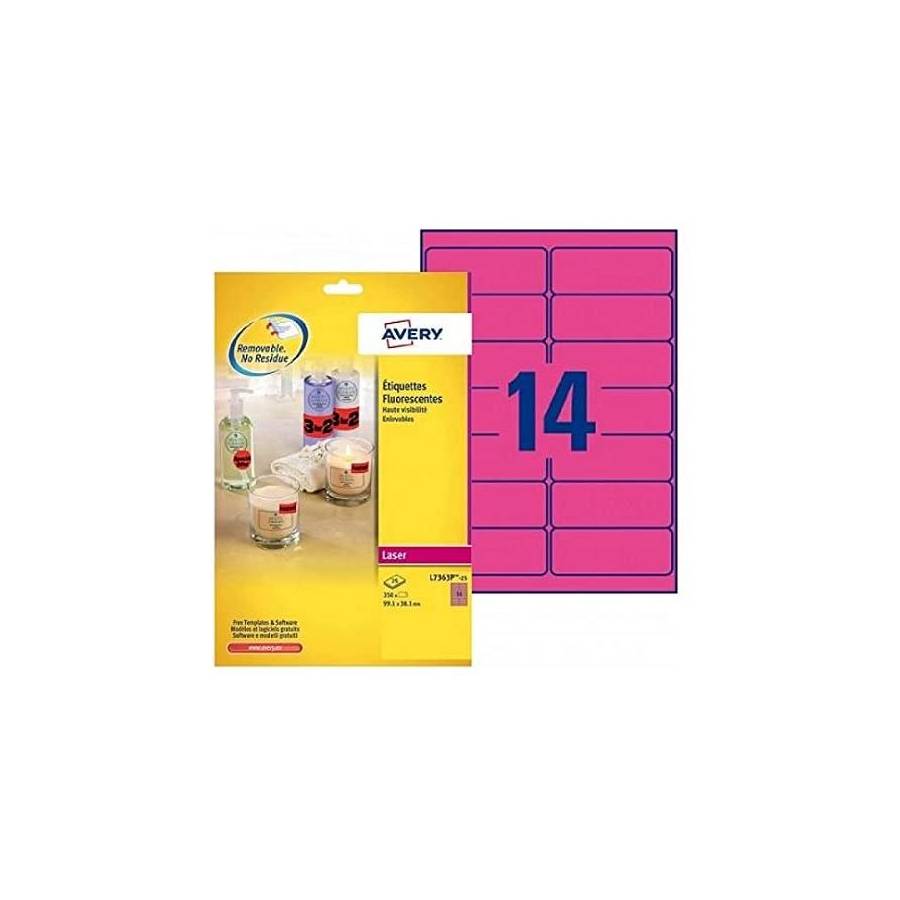 Boite 350 Étiquettes enlevables 99,1 x 38,1 mm sur 25 feuilles Rose Fluo