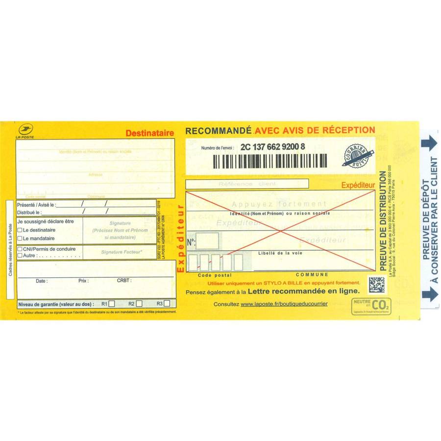 Boite de 100 liasses recommandées guichet avec AR SGR2