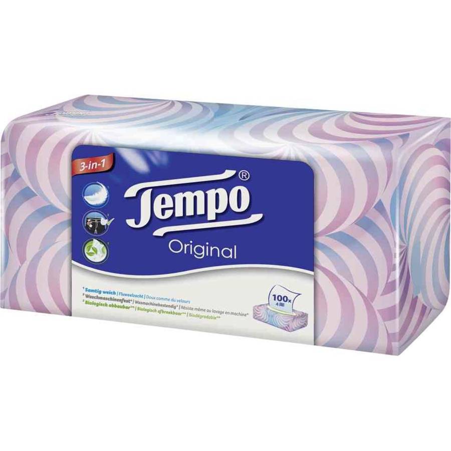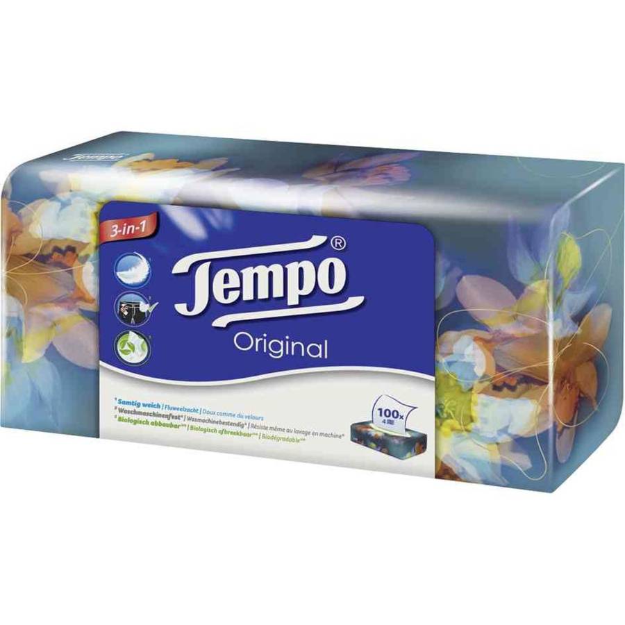 Tempo Mouchoirs Original, 4 couches, blanc, boîte de 100