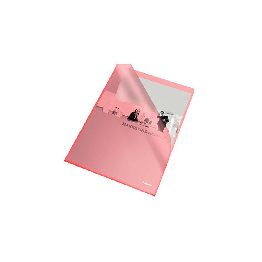 Esselte - Boîte de 100 pochettes-coin Copy Safe rouge en polypropylène 11/100e Capacité: jusqu'à 40 feuilles, Ouverture sur le haut et le côté droit, A4, Conçue pour la protection des documents en déplacement Pas de traces de doigts ou de graisse grâce à la matière grainée mate transparente, Résistante à l'eau Accès facile aux documents grâce à la découpe Film en polypropylène de 110 microns d'épaisseur, Pas de transfert du texte du papier au plastique grâce à la technologie Copy-Safe Contenu : 1 boîte de 100 chemises-coin Esselte, 54834, Dimensions (lxhxp): 220x1x307 mm, A4