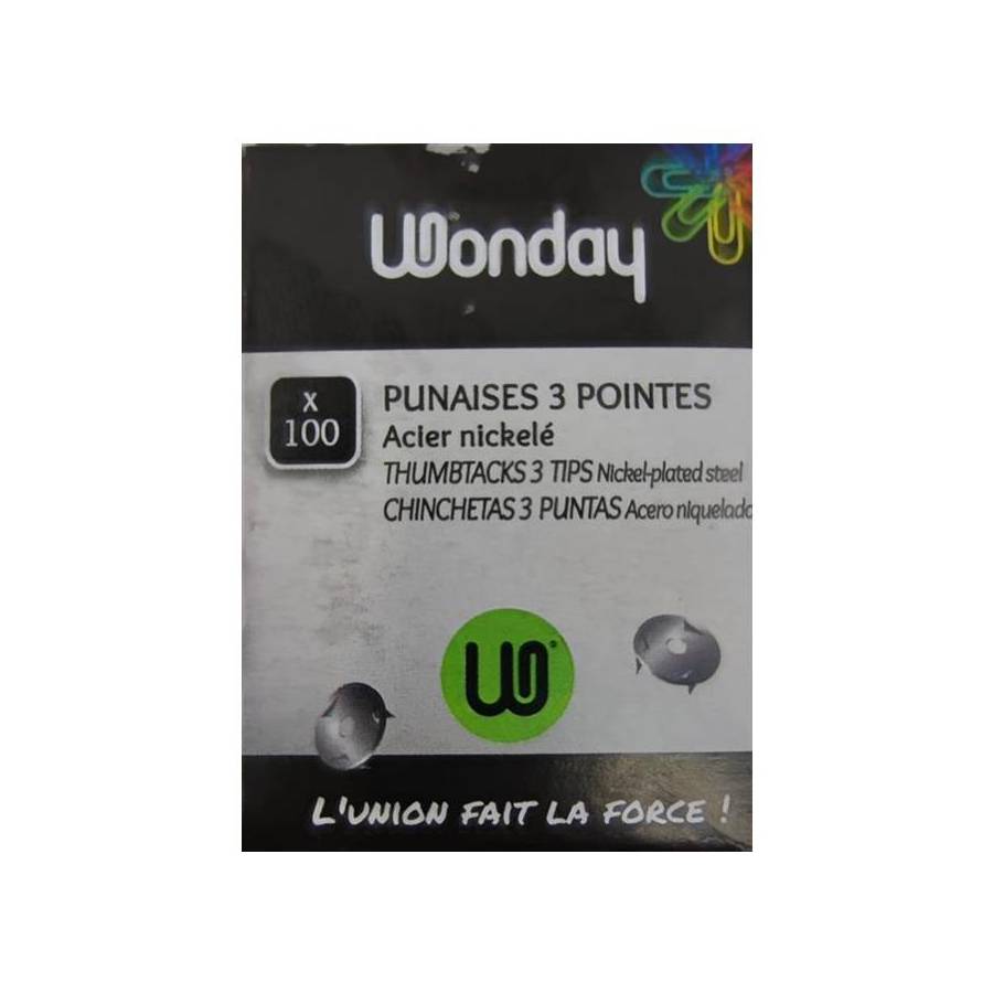 WONDAY - Boite de 100 punaises à 3 pointes En acier nickelé