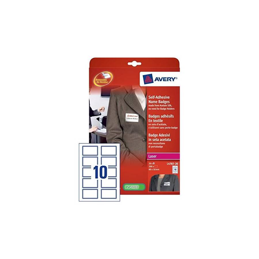 Boite de 200 badges adhésifs 50 x 80 mm Tissu Blanc Liseré bleu