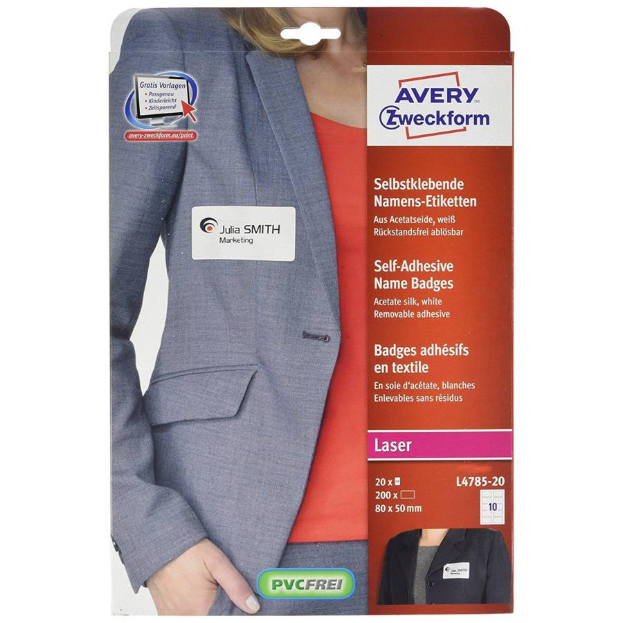 Avery - Boite de 200 badges adhésifs en tissu blanc 5x8 cm