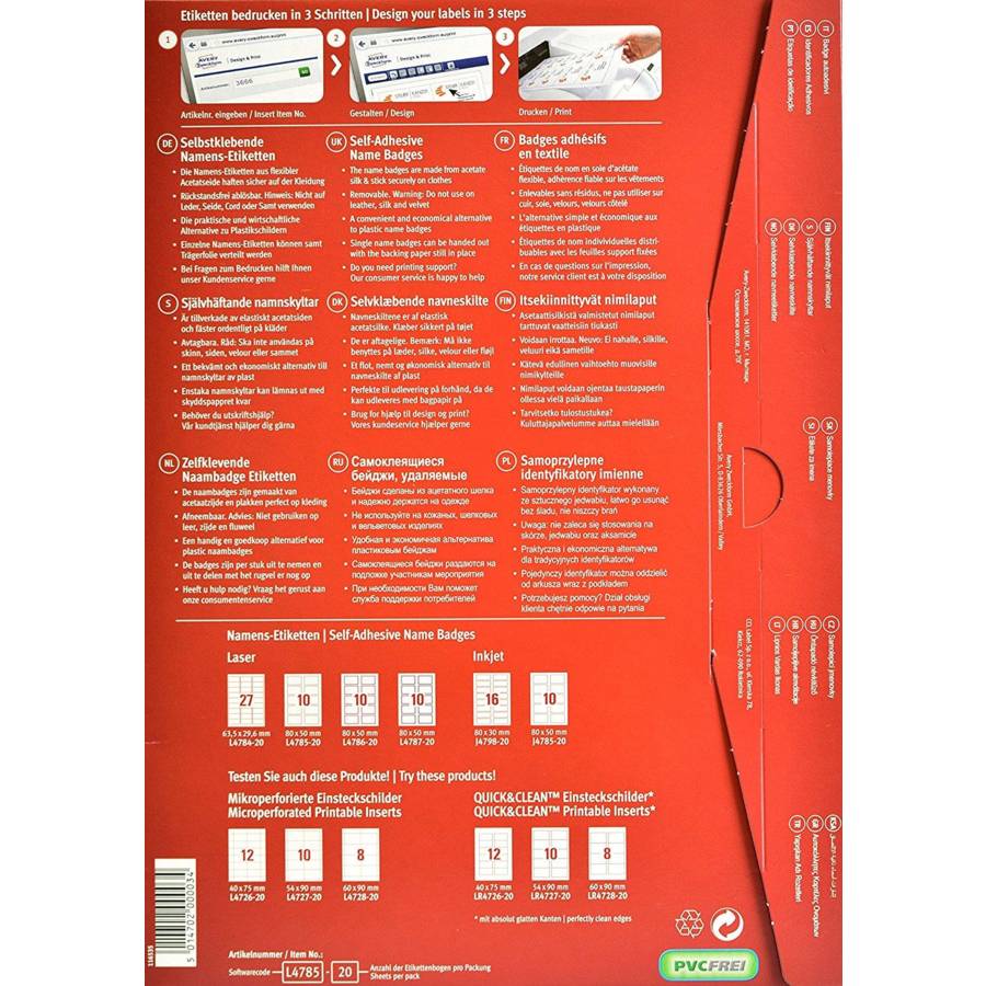 | Fabricant | AVERY ZWECKFORM |