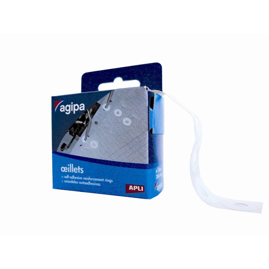 AGIPA - Boîte de 200 oeillets plastique Œillets synthétiques très résistants. Boite distributrice de 200 oeillets en plastique. Diamètre de 13 mm. Renforcez vos documents perforés