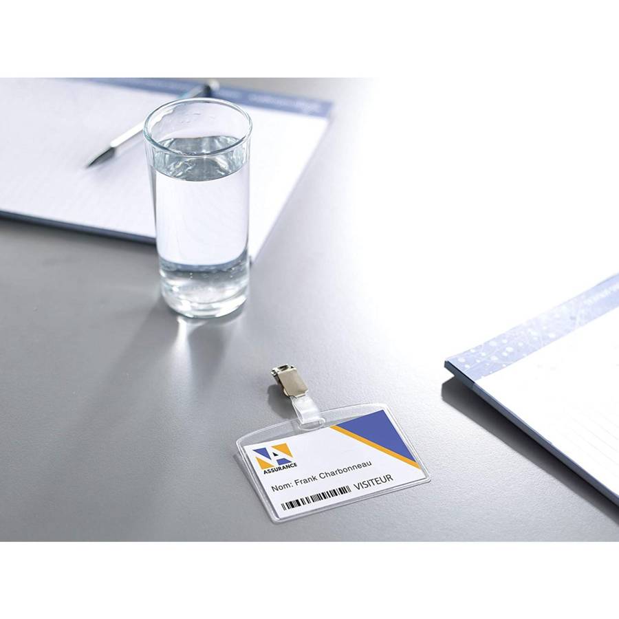 Quantité : 25 pochettes badges avec clip métal et 32 inserts imprimables (4 planches A4)