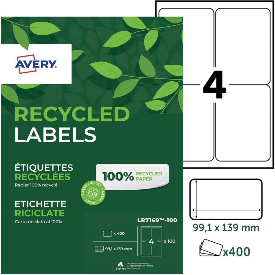 Boîte de 400 étiquettes adresse laser recyclées blanc 99,1 x 139 mm