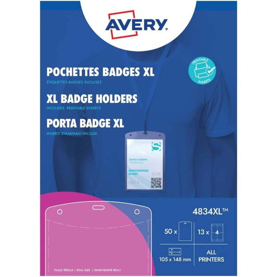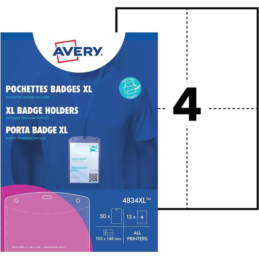 Quantité : 50 pochettes badges sans attache et 52 inserts imprimables (13 planches A4)