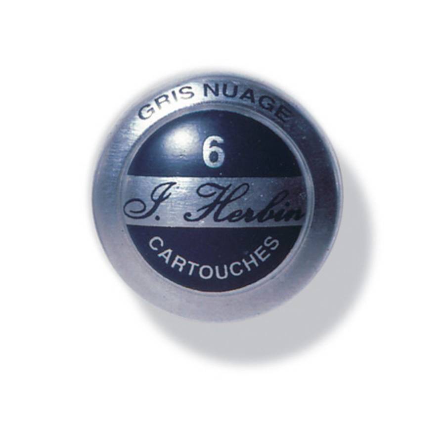 Herbin Boîte de 6 cartouches d'encre standard Gris nuage 6 cartouches format universel d'encre larmes de cassis - petite boite ronde en aluminium
