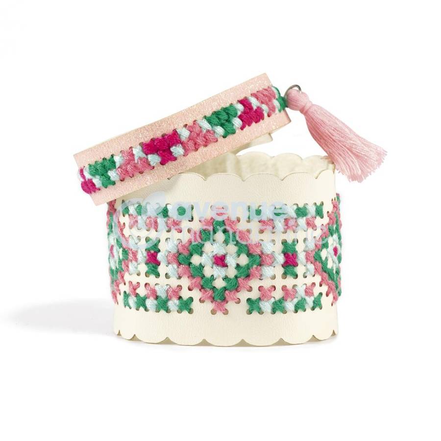 Pix Trésor, Rose Voici le pix' trésor ! Deux bracelets points de croix à réaliser pour un résultat tendance et coloré ! Votre enfant pourra réaliser un bracelet manchette et un bracelet pailleté. Contient : 1 bracelet en plastique avec bouton pression, 1 bracelet en plastique pailleté avec bouton pression, 2 dos de bracelets en feutrine adhésive, 4 fils, 1 aiguille, notice. Faites découvrir ou redécouvrir le plaisir de coudre aux enfants entre 6 et 10 ans. Conforme aux normes CE, ce bracelet peut aussi devenir le bracelet de l'amitié entre votre enfant et son ou sa meilleur(e) ami(e).