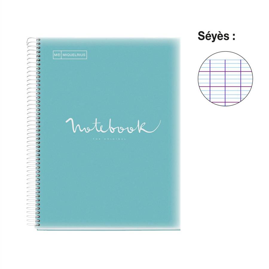 Cahier A4 Carnet Emotions 80 Feuilles 90 g/m² Séyès Spirale Perforation 4 trous, Bleu ciel