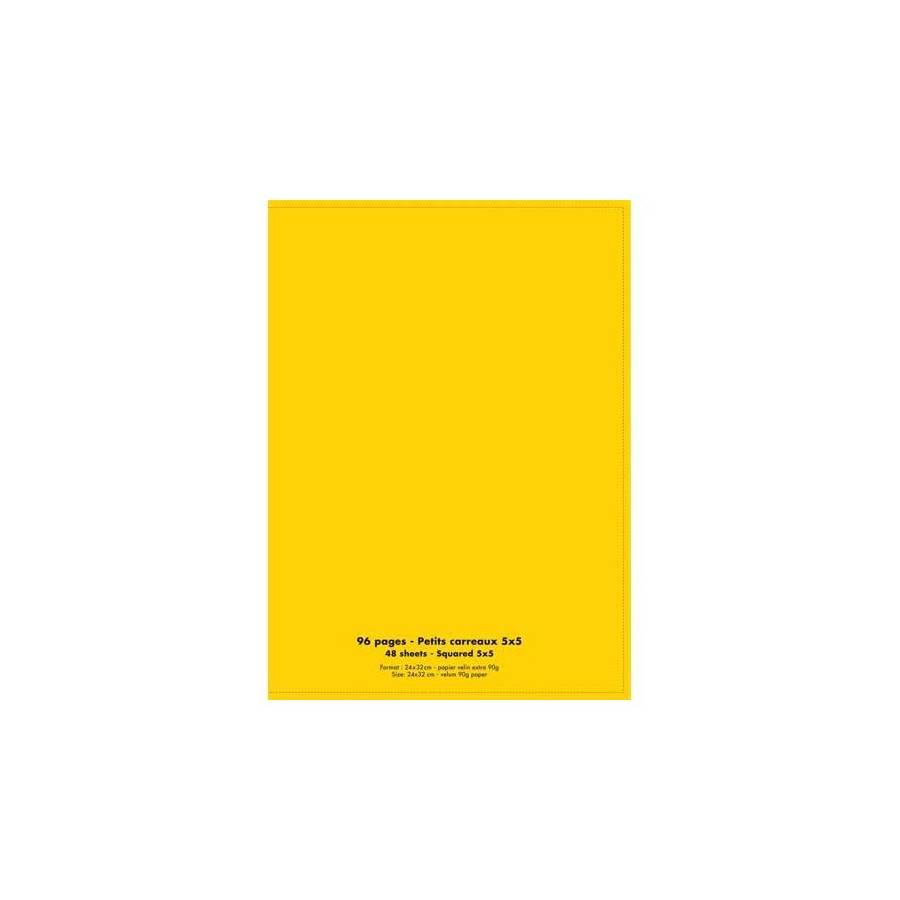 Largeur : 24 cm x Hauteur : 32 cm. Réglure à petits carreaux 5 mm réglure quadrillée 96 pages - Epaisseur 90 g. Couverture plastique translucide, fabriquée en polypropylène Reliure agrafée, Couleur de la couverture : Jaune Certifié Ecolabel EU faible impact environnemental de la fabrication du papier et certifié PEFC gestion durable des forêts