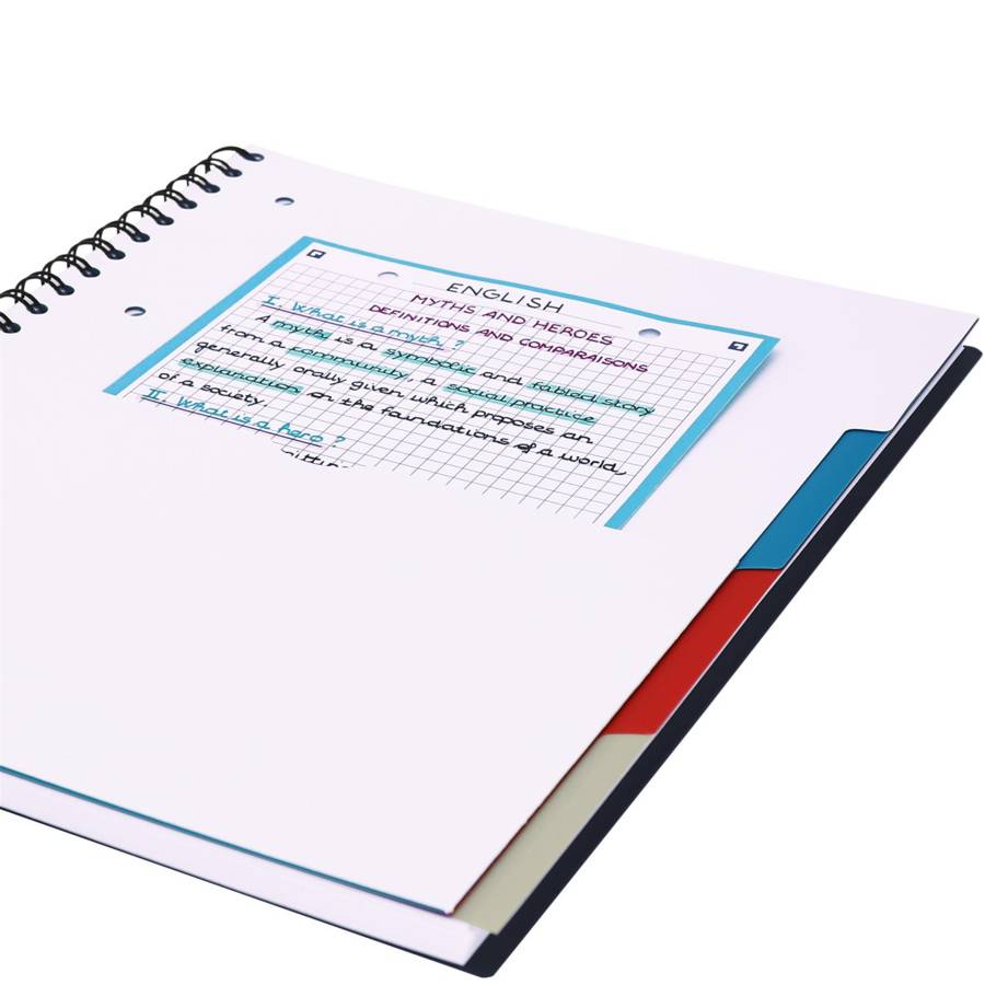 Caractéristiques du produit Format A4+ - Largeur : 24, 5cm x Hauteur : 31cm Réglure à petits carreaux 5mm - réglure quadrillée - avec un en-tête et une marge 160 pages - Qualité Optik Paper, un papier satiné extra blanc. Les feuilles sont perforées à 4 trous. Couverture plastique opaque, en polypropylène Reliure intégrale noire 3 intercalaires en polypro repositionnables Pochette de rangement en début de cahier Couleur de la couverture : Aléatoire parmi 4 coloris - Gris, Bleu, Rouge, Bleu Aqua Compatible avec l'application gratuite SCRIBZEE
