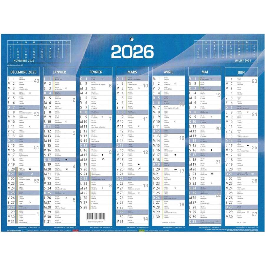 QUO VADIS Calendrier de banque bleu , 270 x 210 mm 14 mois, de Janvier à Juillet (recto) et de Juillet à Janvier (verso), imprimé quadri sur papier offset, contre- collé, rembordé, 1 oeillet de suspension (238023Q)