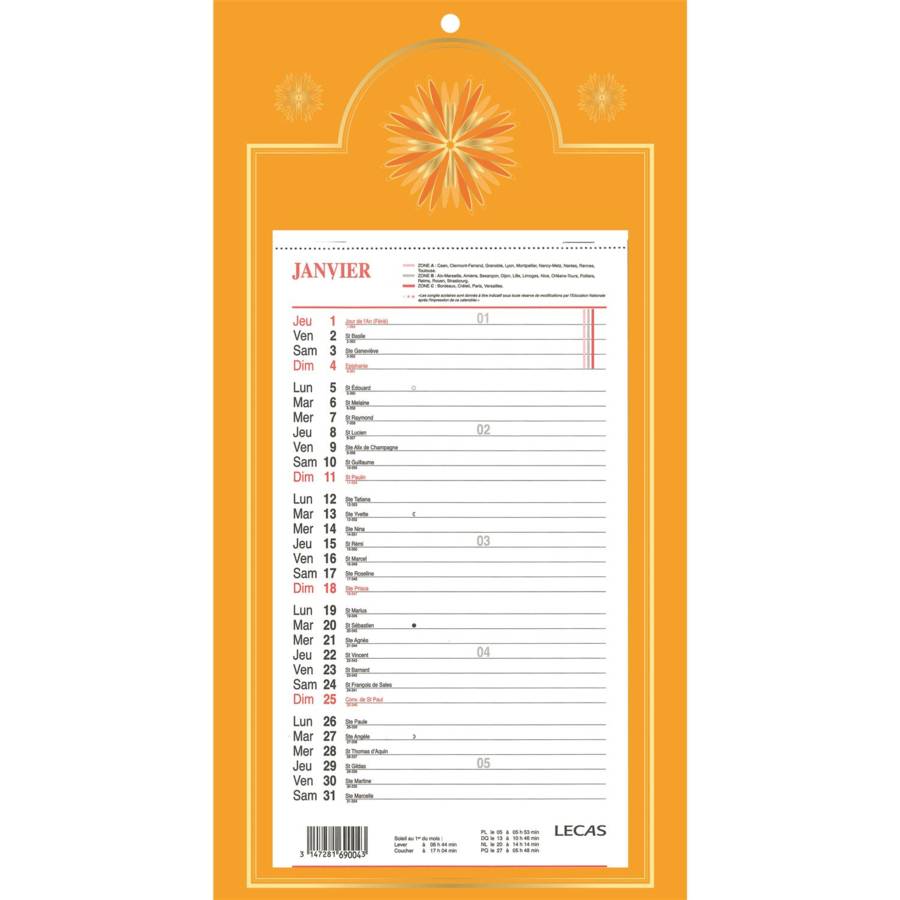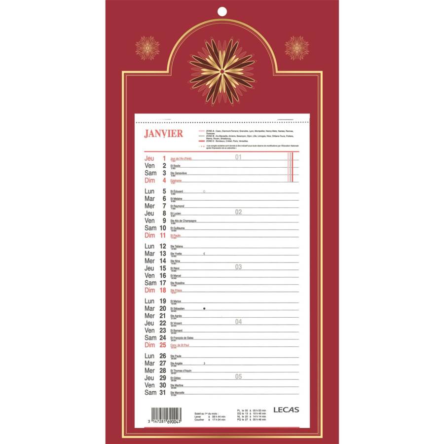 LECAS - Calendrier mural mensuel - 16 x 33 cm - 12 Feuilles