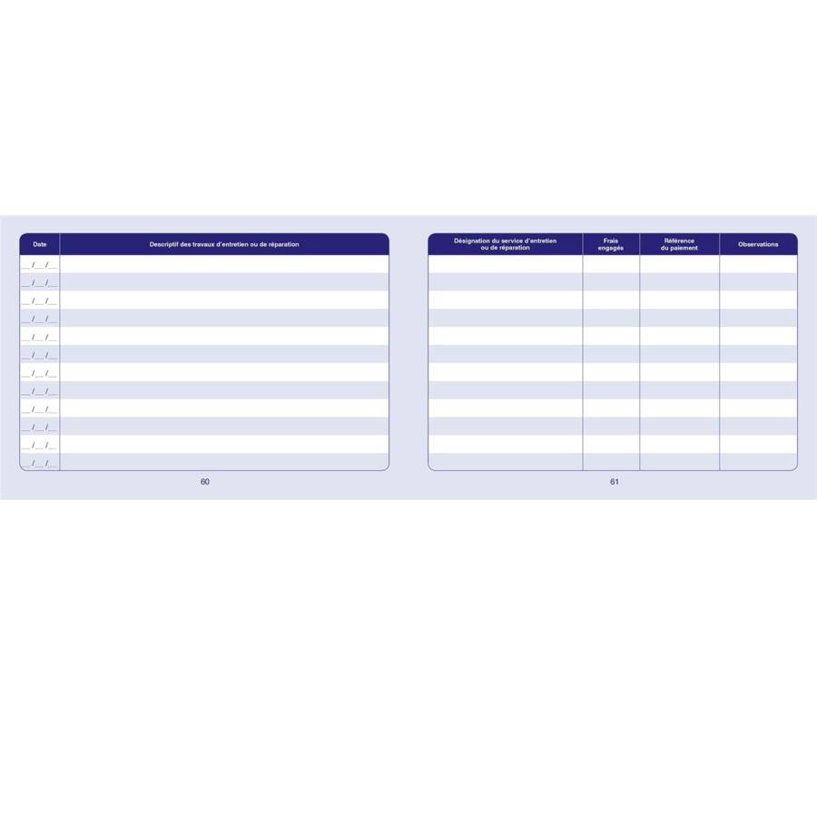 Ce carnet est initialement destiné aux mairies et administrations. Il comporte : - page 1 : identité du véhicule - pages 2 et 3 : signatures des personnes accréditées - page 4 à 55 : contrôle de circulation - pages 56 à 63 : entretien et réparations - page 64 : notes Format : 150 x 215 mm à l'italienne, Couverture : dossier couleur orange, impression Pages : 64 pages sur offset 100 g, impression bleue, folio de 1 à 64 recto verso