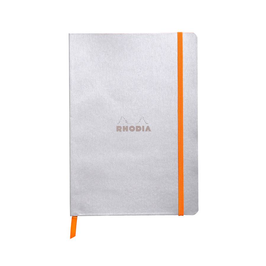 Voir plusCarnet RHODIARAMA à couverture souple en simili cuir coloris argent, au format A5. Il comporte 160 pages de papier ivoire, un ruban marque-page orange, une pochette intérieure à soufflet au dos et un élastique de fermeture Réglure lignée : les pages sont imprimées d'élégantes lignes grises espacées de 7 mm et offrent un support élégant à vos notes PAPIER CLAIREFONTAINE vélin velouté 90 g, exceptionnellement lisse pour un parfait confort d'écriture. Son excellente opacité permet d'écrire des deux côtés sans effet de transparence, l'encre ne traverse pas ÉCOLOGIQUE : le papier CLAIREFONTAINE, certifié PEFC, est issu de forêts gérées durablement et de sources contrôlées. L'impression de la réglure est faite à partir d'encres végétales sans alcool, diluées à l'eau et conformes aux directives européennes REACH. Sans acide, au pH neutre. Convient aux vegans Faconnés et cousus à la main : tous les carnets et cahiers Rhodiarama sont fabriqués dans nos ateliers avec méticulosité selon un savoir-faire artisanal