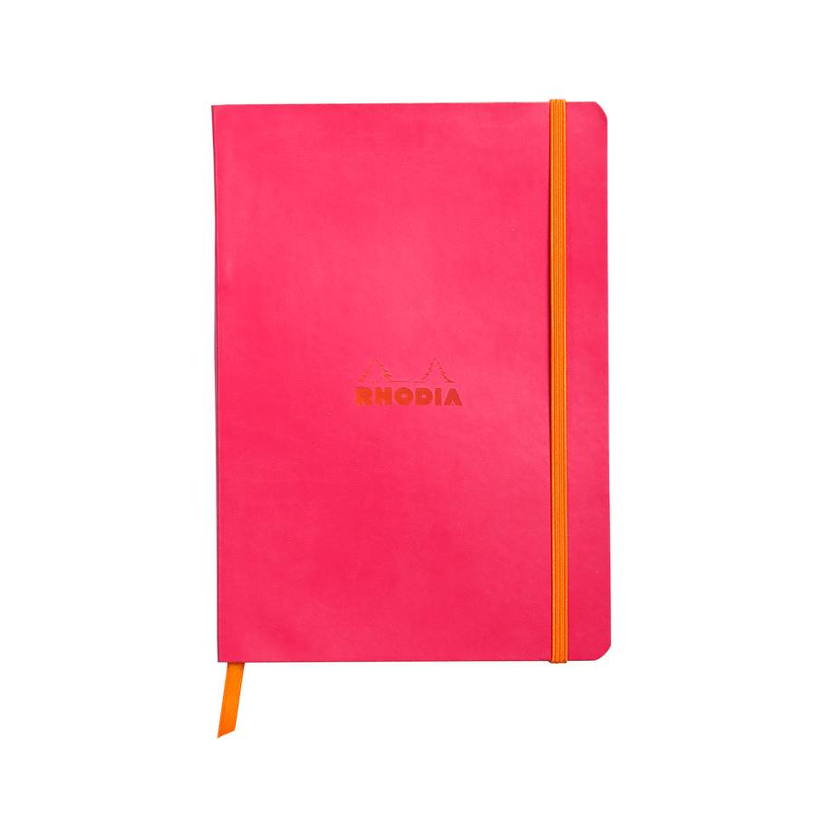 RHODIARAMA carnet souple FRAMBOISE A5 ligné 160p pap ivoire Clf 90g ferm. élast.