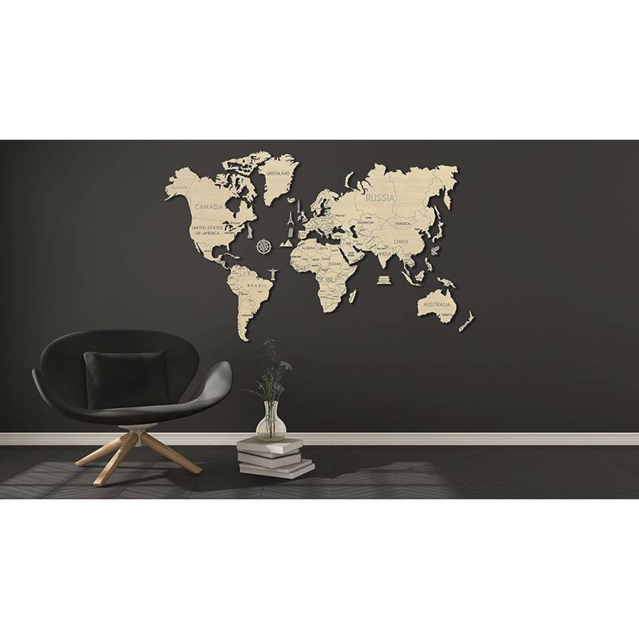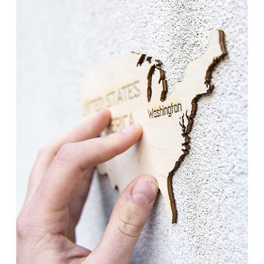 Carte du monde en bois puzzle 3D pour votre mur. Fabriqué facilement de vos propres mains et fixé sur n'importe quelle surface avec du ruban adhésif double face. Marquez vos voyages sur la carte et profitez de vos souvenirs !